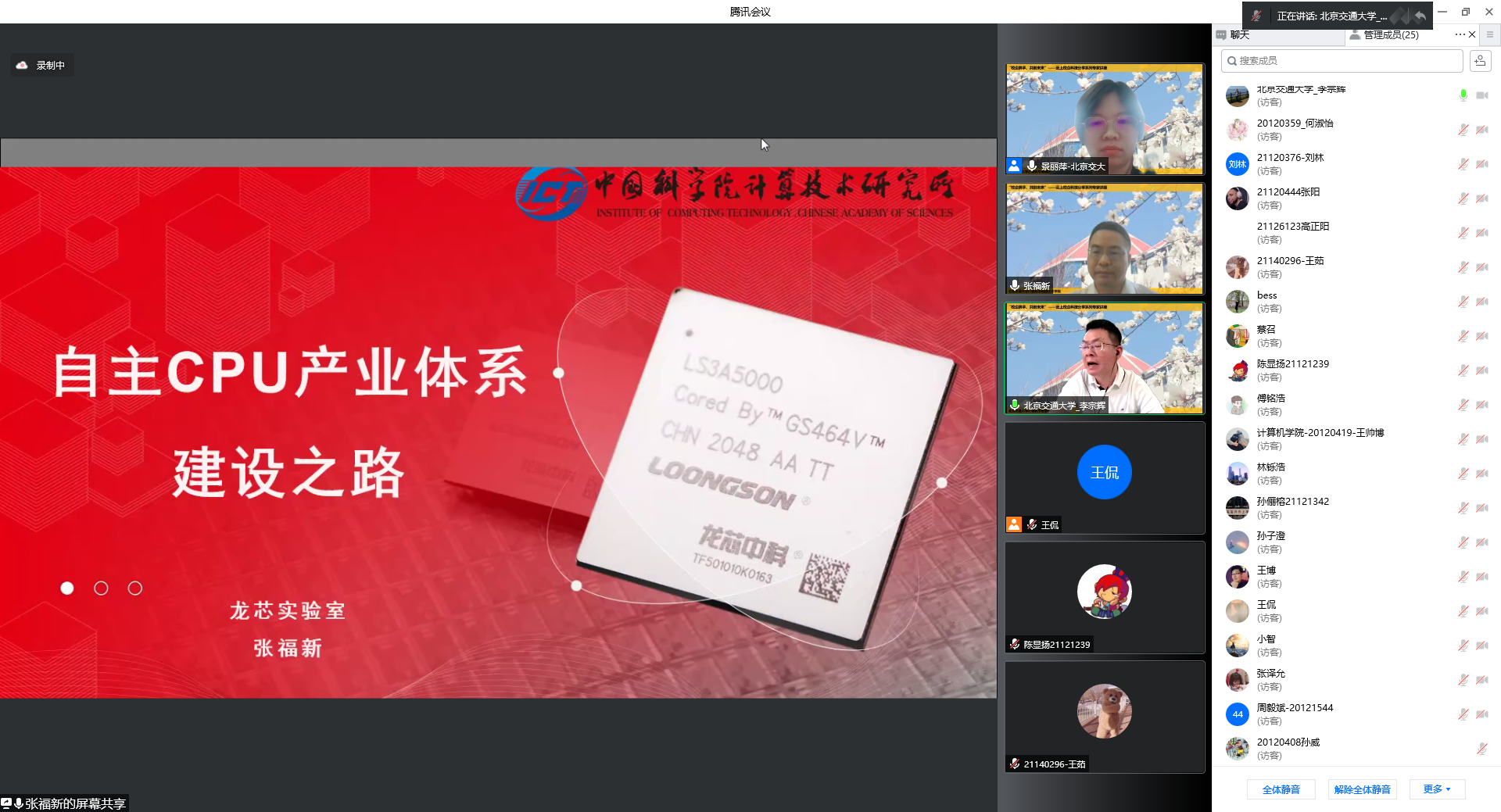 2022年6月29日上午,今年会官网计算机与信息技术学院“云上校企科技分享系列专家讲座”活动有幸邀请到中国科学院计算技术研究所微处理器中心副主任,龙芯实验室主任张福新,讲座主题为 “自主CPU产业体系建设之路”。