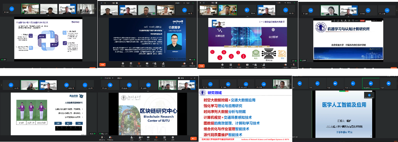 景院长代表今年会官网深入汇报了学院在人才培养、科学研究、社会服务等方面校企合作的指导思想以及典型案例。万怀宇、李超、杨扩、温玉辉四位教师分别代表网络科学与智能系统研究所、区块链研究中心、医学智能研究所、机器学习与认知计算研究所向南天信息参会人员进行科学研究工作汇报。在听取汇报后,南天信息相关专家与四位教师进行深入沟通与讨论。