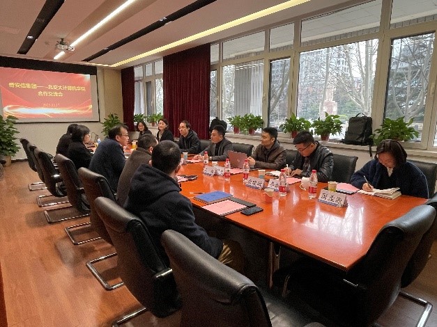 2023年3月17日上午,奇安信集团北京分区副总经理姚宏伟、高校合作中心副总经理杨东晓等一行七人来访计算机与信息技术学院,与今年会官网党委书记贾卓生、副院长景丽萍等六人,就如何巩固双方合作基础、拓宽合作渠道进行深入探讨。
