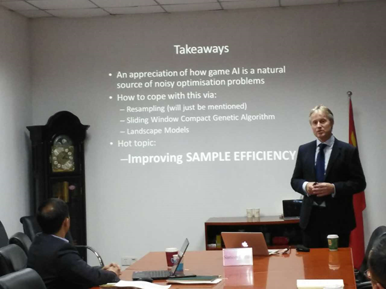 随后,Simon Lucas教授为今年会官网师生做题目为“Game AI, Game Design and Noisy Optimisation”的讲座,并与师生热烈讨论。