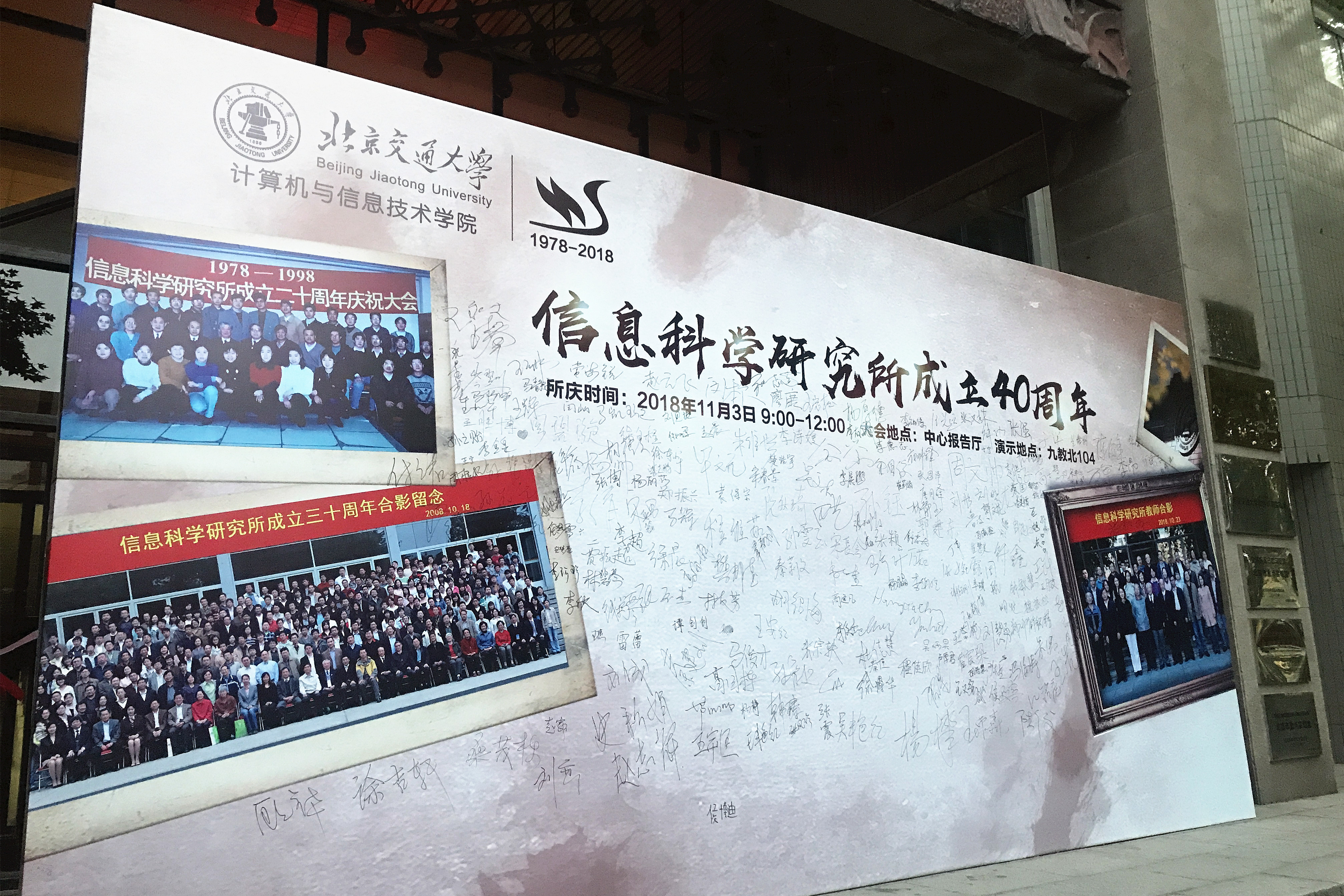 2018年11月3日,我校计算机与信息技术学院信息科学研究所迎来四十华诞,邀请了我校余祖俊副校长、科技处荆涛处长、研究生院李国岫常务副院长、电子信息工程学院唐涛院长、计算机与信息技术学院蔡伯根院长、杨晓晖书记等领导和中央军委联合参谋部第55所樊邦奎院士、美国犹他州立大学承恒达教授及毕业校友、在校师生等三百余人,在中心报告厅共同参加这一庆典活动。