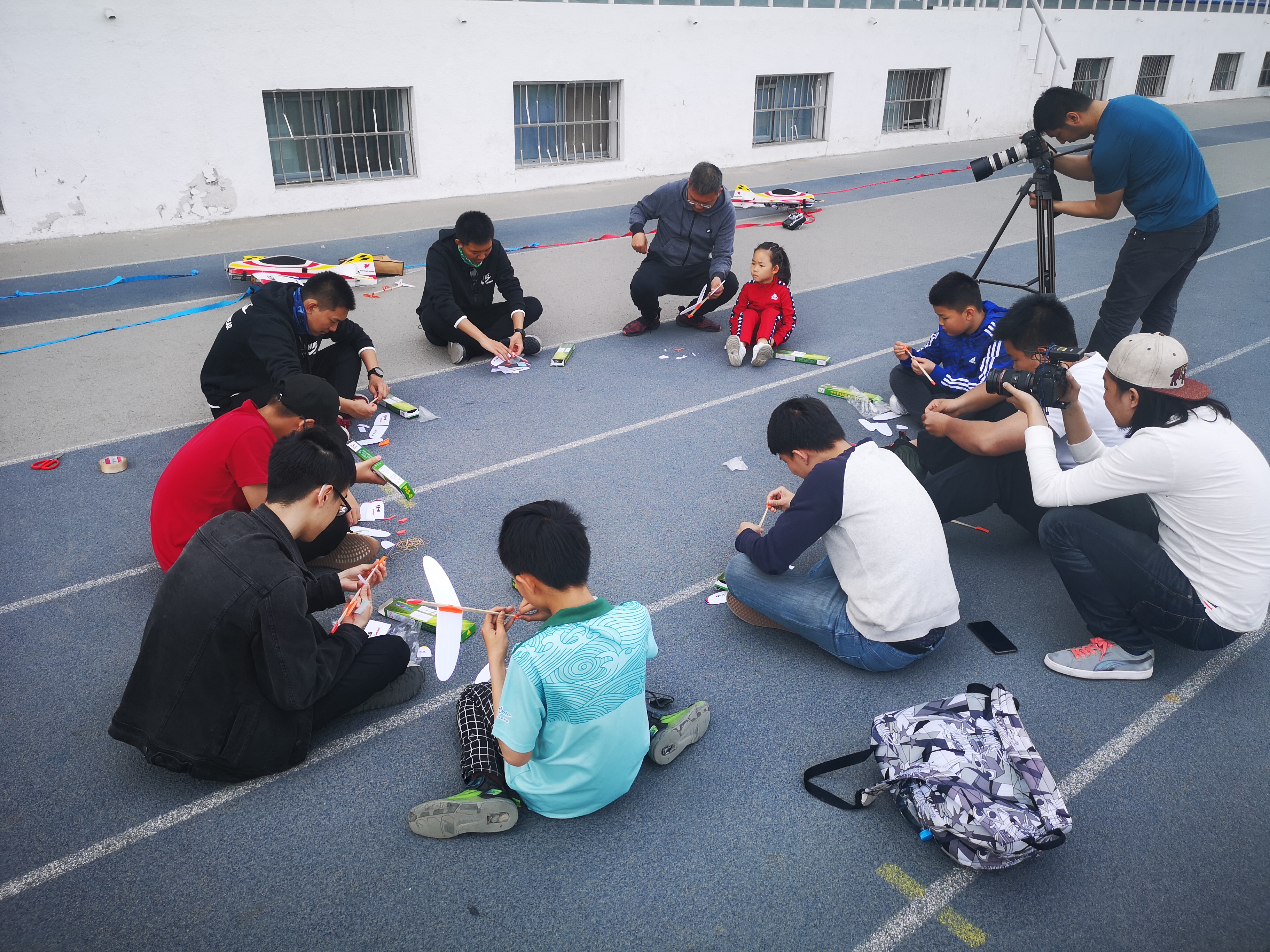随后,本次活动的指导教师向参加活动的师生及航模爱好者分发简易航模制作零件,在教练详细的指导下,大家开始制作模型,在制作过程中,大家互相交流讨论,顺利制作出了属于自己的简易航模。最后,大家还用自己制作的航模进行滞空时间比赛。