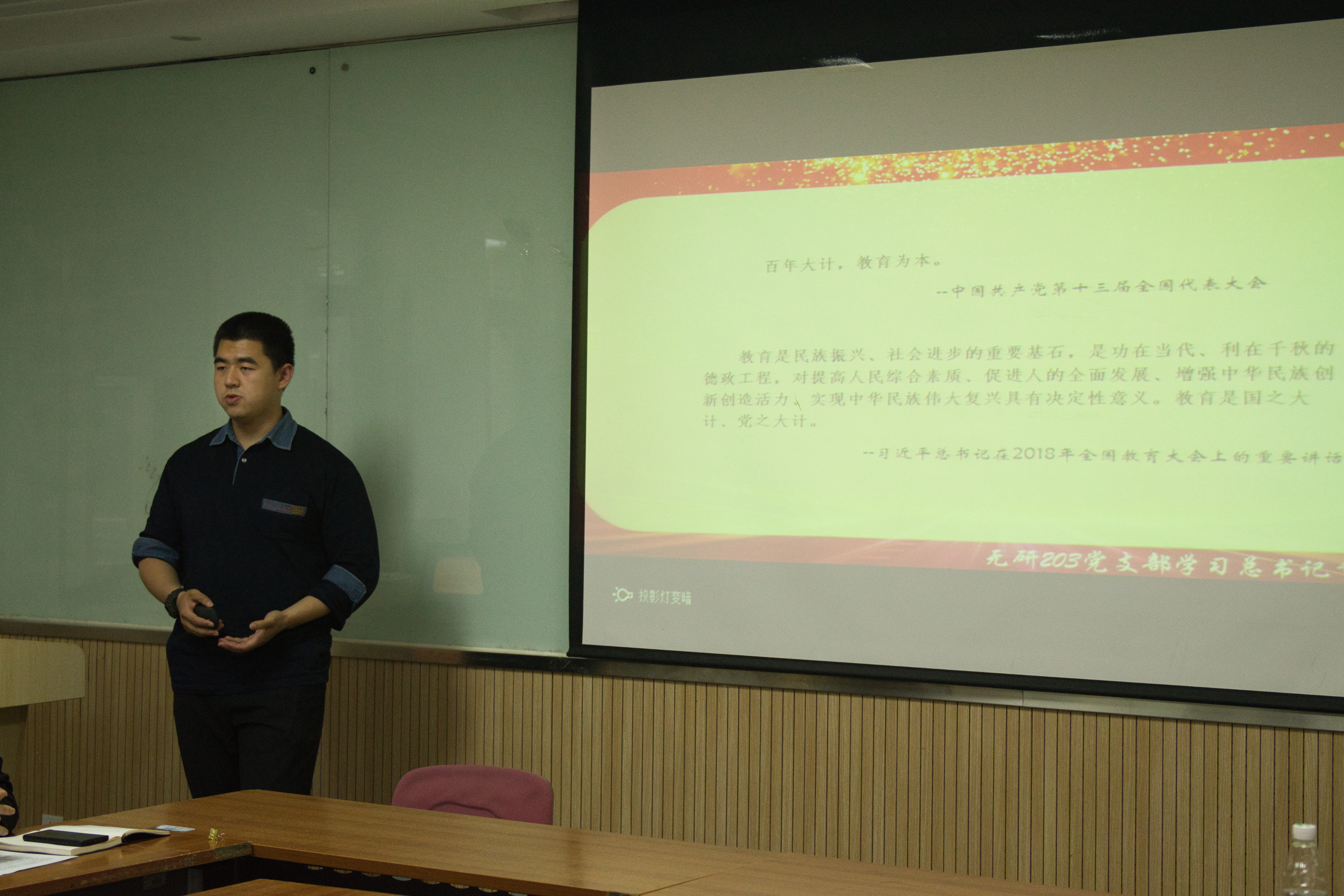 最后,王鑫同志表示,作为中国一流大学的学生,我们应该按照习近平总书记对广大青年的要求,立大志、明大德、成大才、担大任。坚持做胸怀宽,境界高,眼光远的人。在科研工作中,要面向国家战略需要,勇于创新,敢为人先,敢于突破,多做高水平科研成果,力争在真刀真枪的实干中成就一番事业。