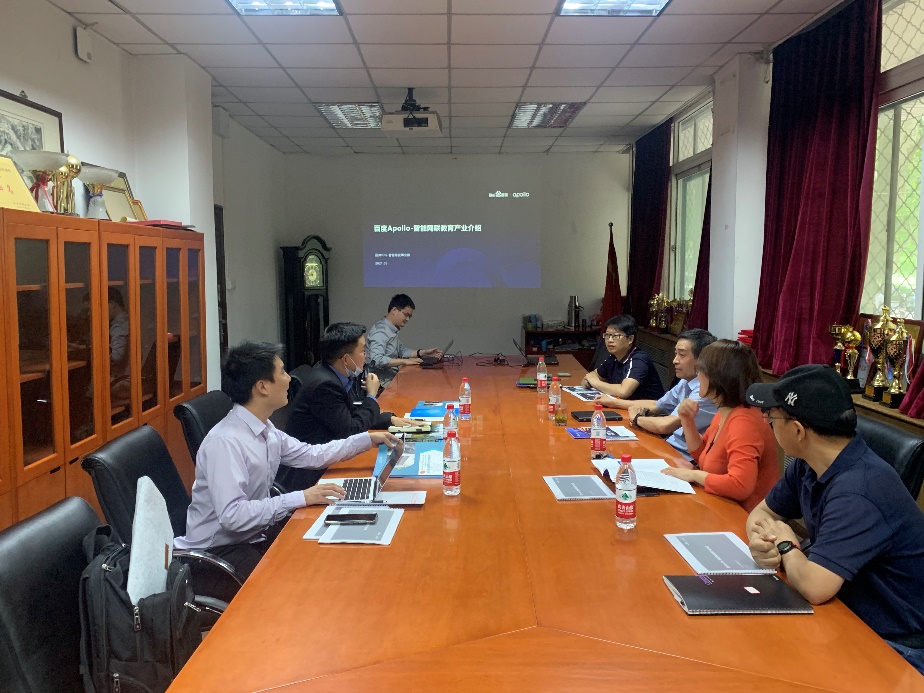 会议由熊轲副院长主持,对百度Apollo团队的到访表示热烈的欢迎。韦志勇介绍了百度Apollo-智能网联教育产业,期望在新基建时代背景下,以智能网联、交通强国战略为导向,通过产教融合新模式,深化“产学研用”一体化,全力支持高校人才培养,打造教育行业合作标杆。蔡伯根院长从学院人才培养方案出发,梳理了人才培养改革创新的需求,希望能够引入百度智能网联教育产业的资源,在课程建设及实习实训等方面有所建树,强化升级学院的实践教学建设。与会人员就自动驾驶、虚拟仿真等课程建设内容进行了积极的交流和探讨。
