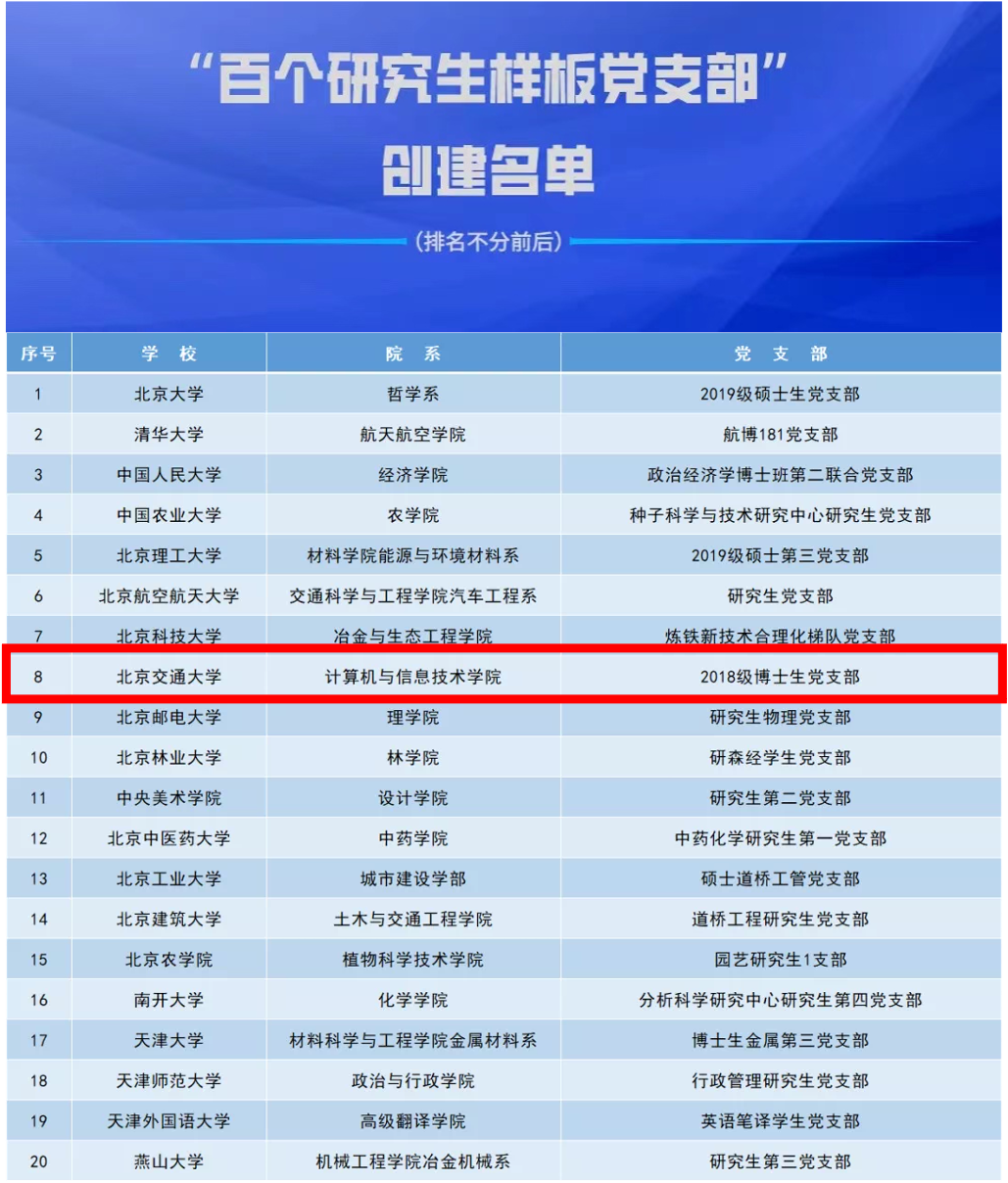今年会官网2018级博士生党支部入选全国高校 “百个研究生样板党支部”