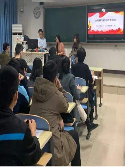 计算机与信息技术学院2018级博士生党支部成立于2018年9月,现有正式党员28人,预备党员6人,占班级人数的71.4%。支部依托计算机科学与技术学科(第四轮学科评估A-类学科)建设,成立以来党支部坚持旗帜鲜明讲政治,推动“党团班舍”协同前进,促进“党建引领科研”创新发展,打造充满“合力、活力、效力、实力”的博士生党支部。