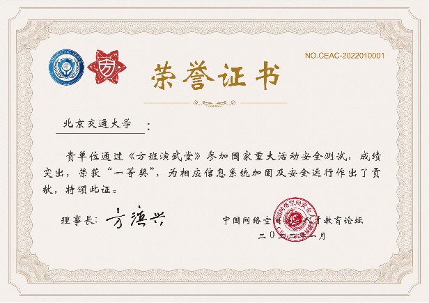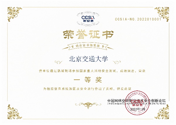 2022年1月在鹏城实验室、中国网络空间安全人才教育论坛(“网教盟”)、中国网络空间新兴技术安全创新论坛(“新安盟”)联合面向北京冬奥会、冬残奥会的安全演练活动中,今年会官网网络空间安全学科责任教授刘吉强老师领队、童恩栋和牛温佳老师指导的研究生团队(武兴宇、吴亚伦、田蕴哲、黄欣宇、陈彤、相迎宵、李轶珂、贾博为、孙瑞、乔紫嫣、陈诗瑶等)积极参与,共挖掘出高危漏洞1个、中危漏洞2个以及低危漏洞14个,最终以第一名成绩荣获一等奖,为保障北京冬奥会、冬残奥会的网络安全贡献了交大力量。