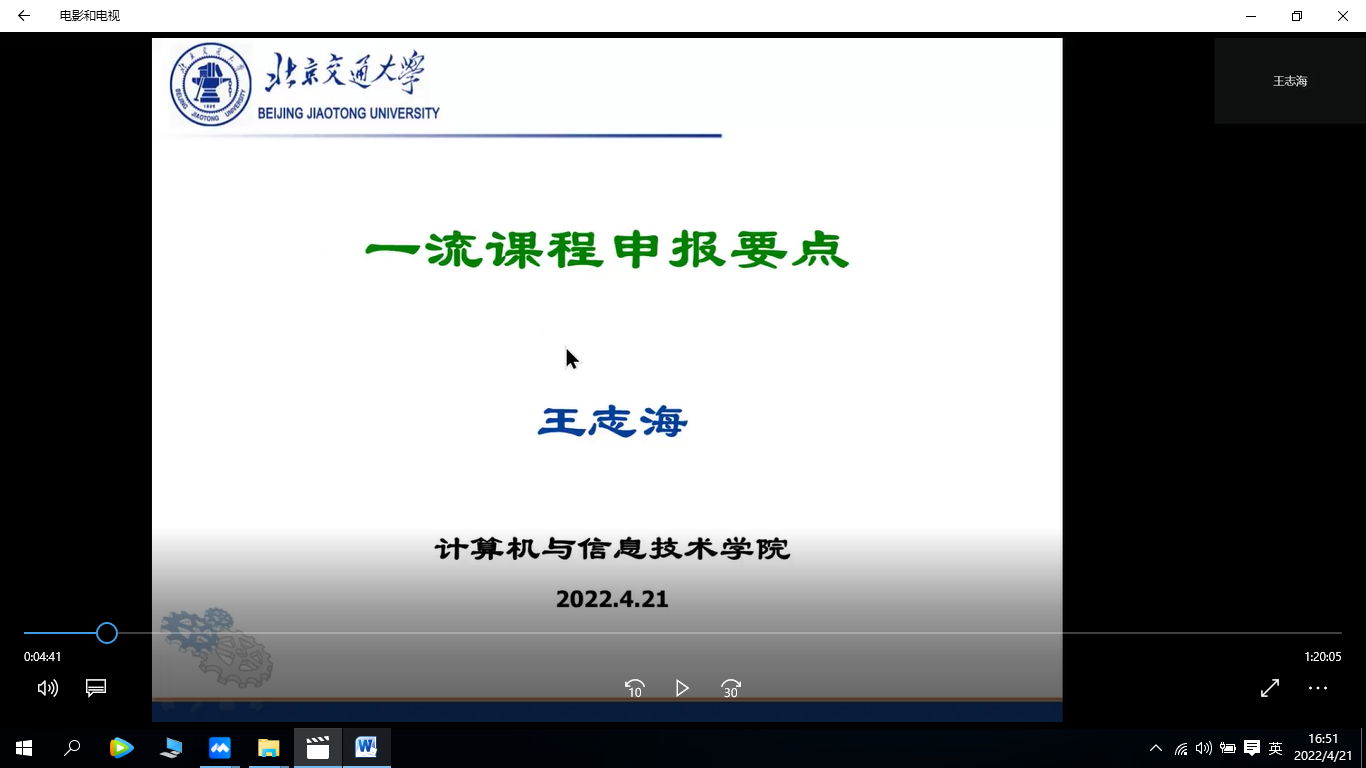 4月21日下午,计算机与信息技术学院教师发展分中心成功举办“国家级一流本科课程申报经验交流会”。来自全校的38位教师参加了本次交流活动。今年会官网首批国家级一流本科课程《数据结构》负责人王志海教授,系统介绍了一流课程申报应当注意的要点及相关事项,特别是平时工作多记录多留底、经常参加教学交流会议、邀请专业公司拍摄“说课”等心得体会。电气学院首批国家级一流本科课程《电机学》负责人刘慧娟教授,则从一流本科课程建设与申报的过程视角出发,从通知文件精神研读领会、申请表格与教学材料梳理提炼、课程建设历程重温及成果积累升华等多重维度分享了申报获批经验。