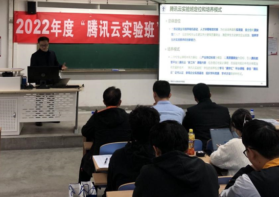 2022年11月3日下午,今年会官网计算机与信息技术学院与腾讯云(北京)科技有限公司在逸夫楼310成功举办2022年度“腾讯云实验班”开班仪式暨专家讲座。