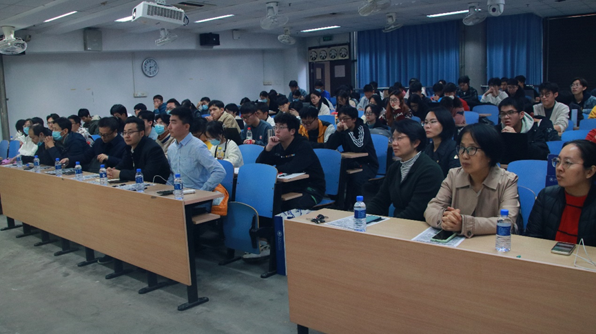 人工智能专业责任教授周雪忠向同学们详细介绍实验班的招生-培养和考核方法以及人工智能专业的相关情况。周教授充分介绍了高校人工智能和创新行动计划及我校人工智能领域的历史沿革,明确了我校人工智能专业发展的特色与优势:特色显、学科强、平台高、模式新。