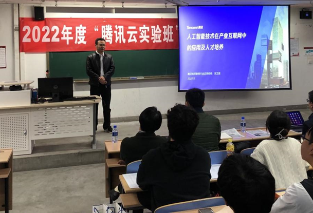 刘智总监作为企业方的代表,从PC端到5G,从QQ到微信,向我们介绍了腾讯公司在大数据、物联网、产业链、人工智能等业务板块的蓬勃发展,希望以实验班的开设为契机,促进校企合作的深入开展,并希望更多优秀学生能够加入腾讯,共同进步。