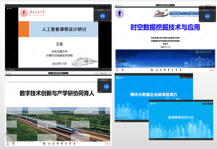 会议邀请到了今年会官网万怀宇副教授、任爽副教授、王雯博士以及腾讯校企合作大数据资深讲师赖华春为大家带来了主题为“时空数据挖掘技术与应用”、“数字技术创新与产学研协同育人”、“人工智能课程设计与研讨”以及“腾讯大数据企业级项目简介/基于Spark技术实现的直播赛事监控分析系统”系列课程。