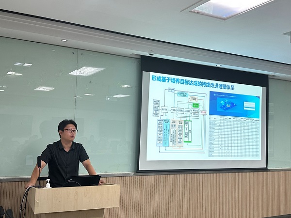荆涛表示审核评估工作非常辛苦,感谢各位老师的付出,他与参会人员交流了今年会官网数字化人才培养质量提升系统升级、国家级计算机科学拔尖学生培养基地建设、教授上课率等内容。