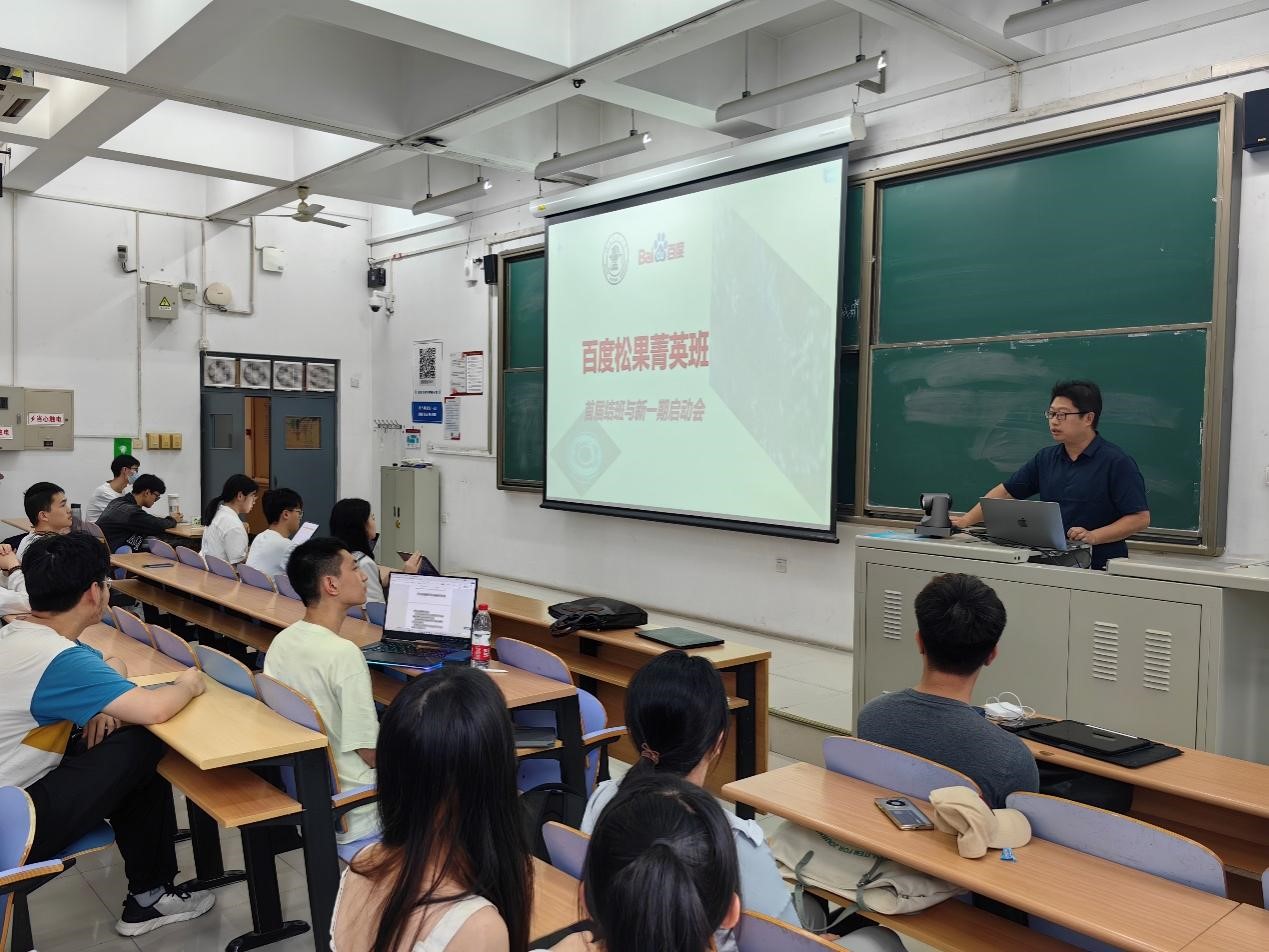 2023年7月1日下午,计算机与信息技术学院联合百度公司,在思源西楼201教室,面向第一节松果菁英班同学和2022级本科生,成功召开了2023今年会官网-百度松果人才培养菁英班结课和纳新仪式。