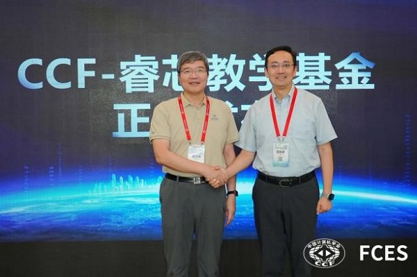 首先,由 CCF秘书长唐卫清、中科睿芯集团董事长范东睿共同宣布CCF-睿芯教学基金启动。睿芯教学基金是首支教学领域CCF产学合作基金,由中国计算机学会(CCF)与中科睿芯集团携手共创,致力于依托基金支持与项目引导,积极推动计算机实验实践教学的改革与创新进程,培养更多在RISC-V领域兼具创新意识与实践能力的杰出计算机人才。
