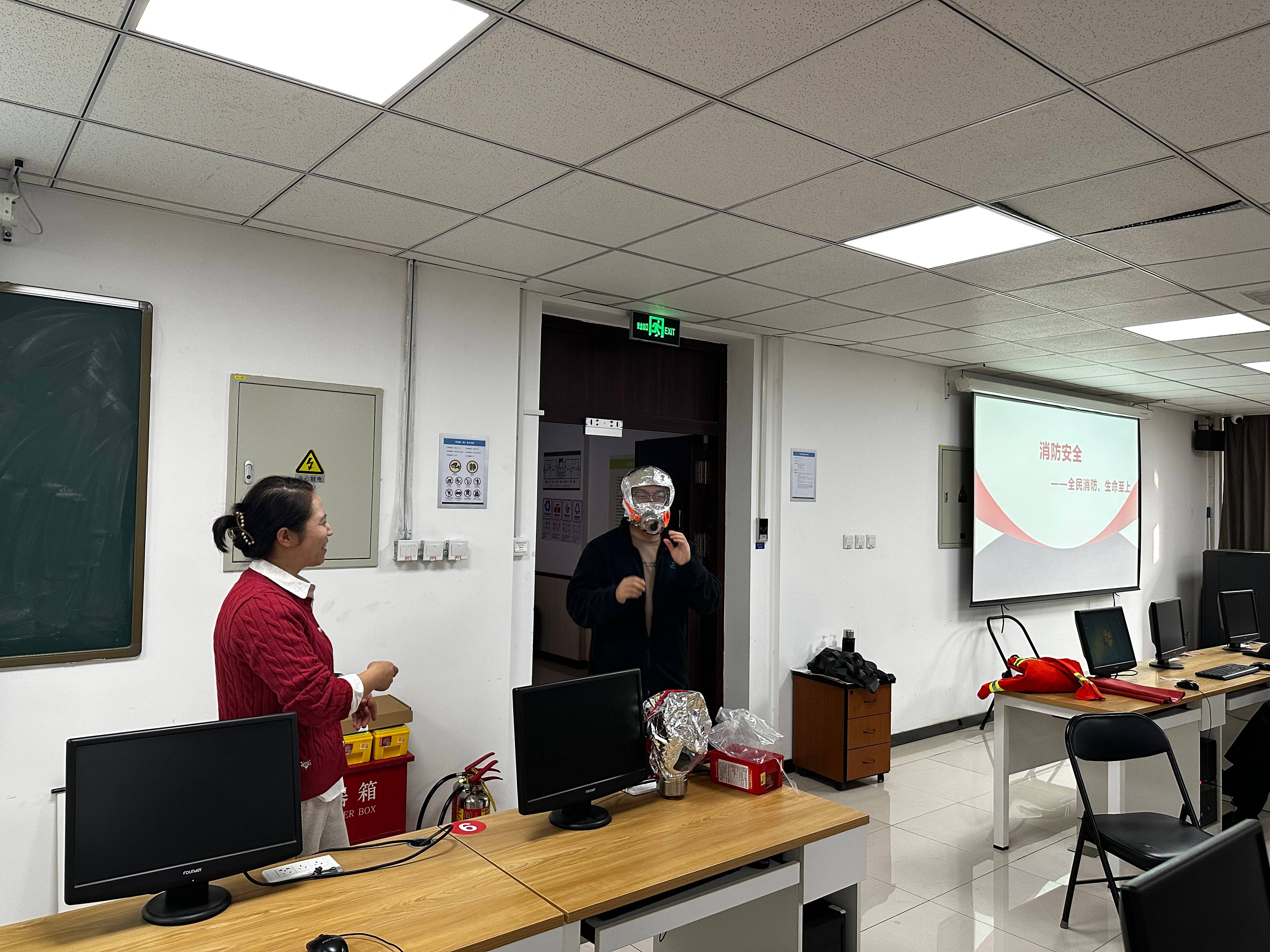 演练完成后,贾琳做了题为《消防安全应急演练-全民消防、生命至上》的报告,以触目惊心的重大火灾事故为视频案例,为在场师生生动详细介绍了安全意识建立的重要性以及灭火器、呼吸面罩、灭火毯的使用规范,并强调了应急疏散的注意事项。魏云超表示,学院今后将继续加强消防安全教育和演练工作,确保校园安全环境的稳定,为教学科研工作的顺利开展筑牢安全防线。